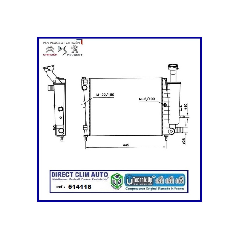TECHNIC UP REF 514118 RADIATEUR MOTEUR POUR CITROEN GROUPE PSA