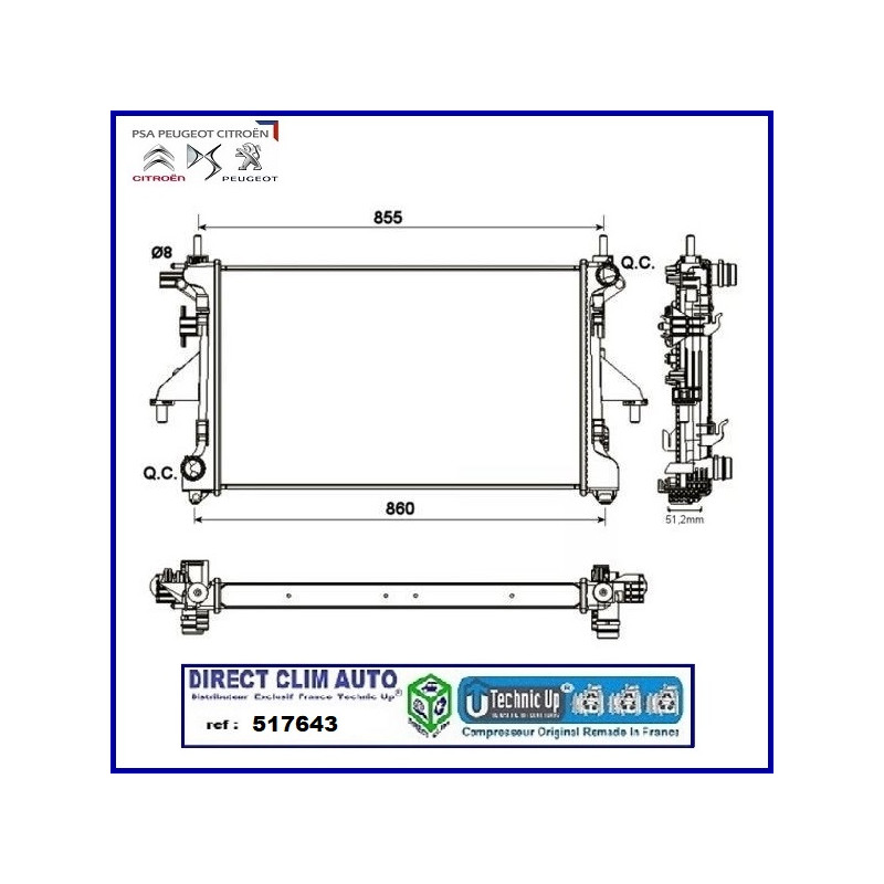 TECHNIC UP REF 517643 RADIATEUR MOTEUR POUR CITROEN GROUPE PSA