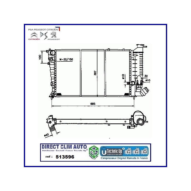 TECHNIC UP REF 513596 RADIATEUR MOTEUR POUR CITROEN GROUPE PSA