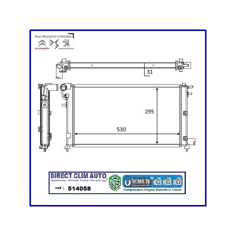 TECHNIC UP REF 514058 RADIATEUR MOTEUR POUR PEUGEOT GROUPE PSA
