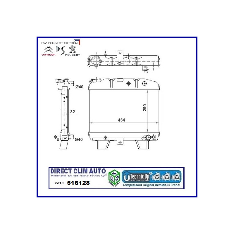 TECHNIC UP REF 516128 RADIATEUR MOTEUR POUR PEUGEOT GROUPE PSA