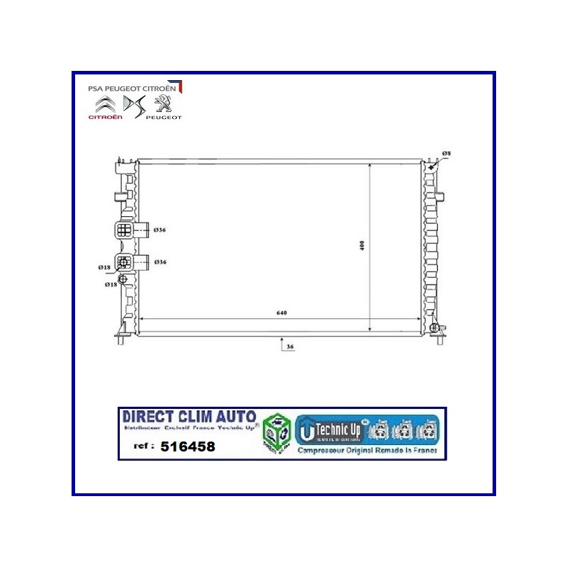 TECHNIC UP REF 516458 RADIATEUR MOTEUR POUR PEUGEOT GROUPE PSA