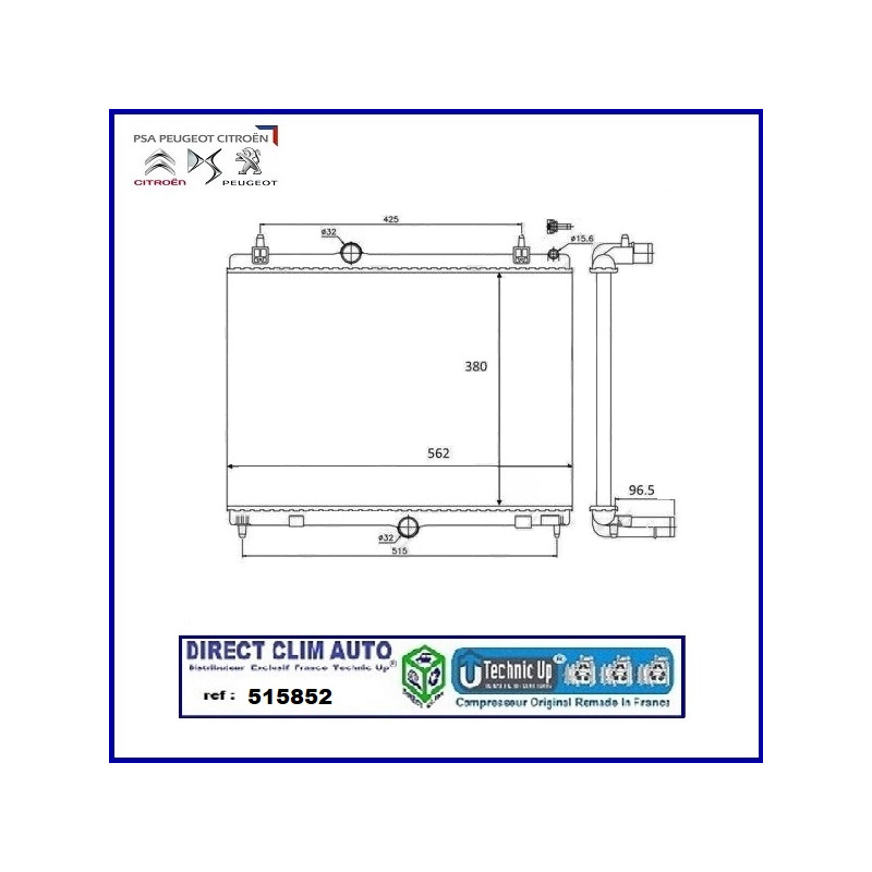 TECHNIC UP REF 515852 RADIATEUR MOTEUR POUR PEUGEOT GROUPE PSA