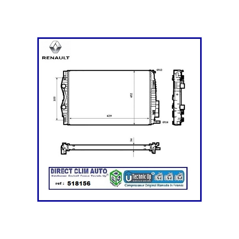 TECHNIC UP REF 518156 RADIATEUR MOTEUR POUR RENAULT