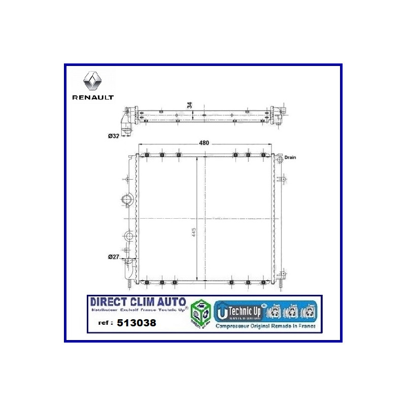 TECHNIC UP REF 513038 RADIATEUR MOTEUR POUR RENAULT