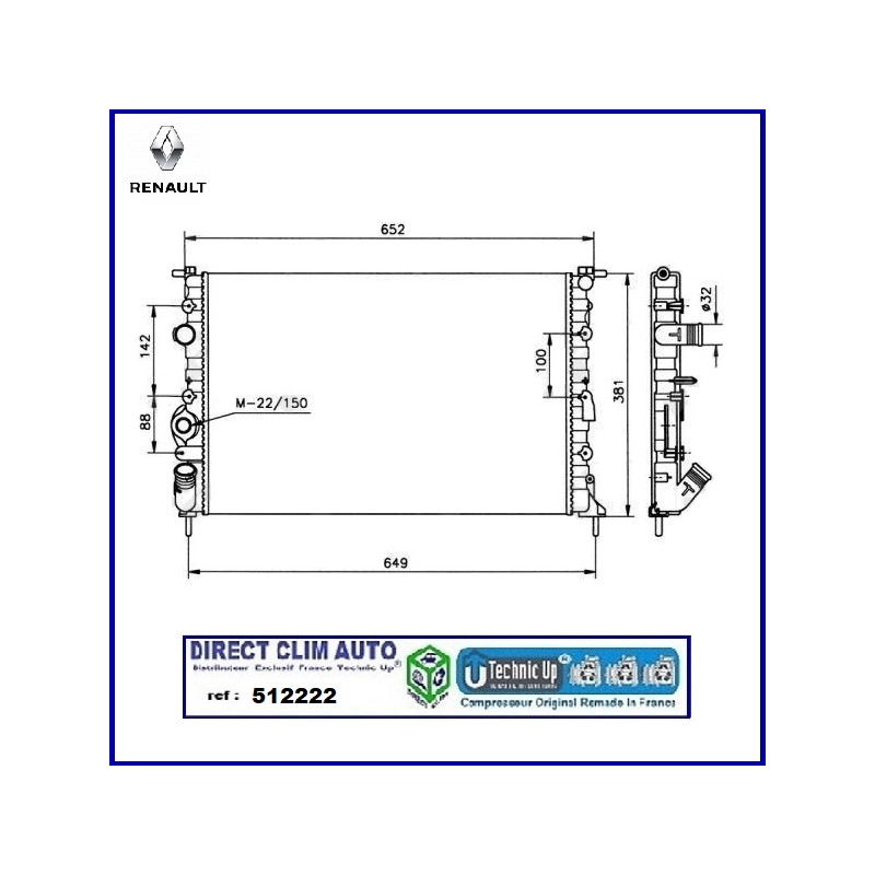 TECHNIC UP REF 512222 RADIATEUR MOTEUR POUR RENAULT
