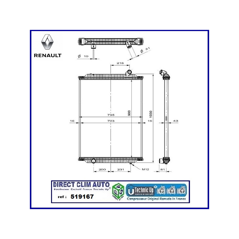 TECHNIC UP REF 519167 RADIATEUR MOTEUR POUR RENAULT