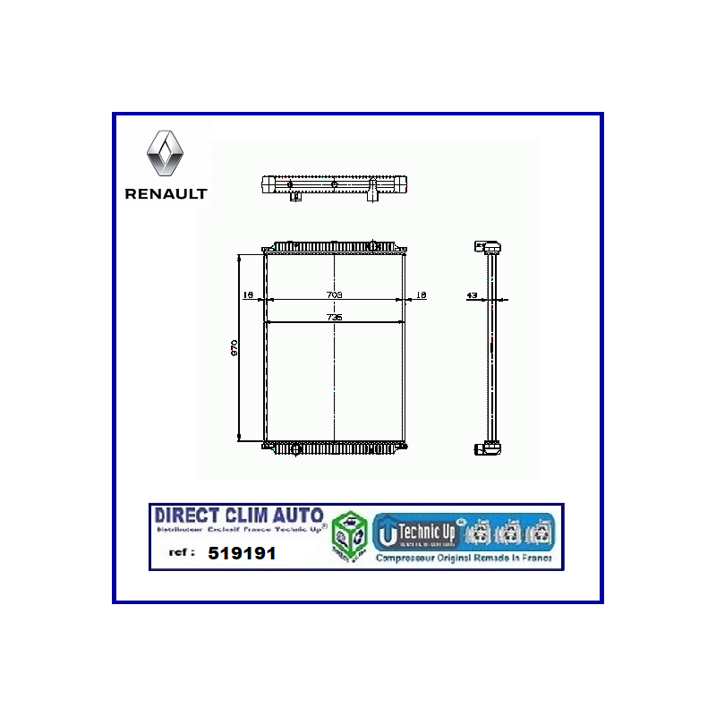 TECHNIC UP REF 519191 RADIATEUR MOTEUR POUR RENAULT