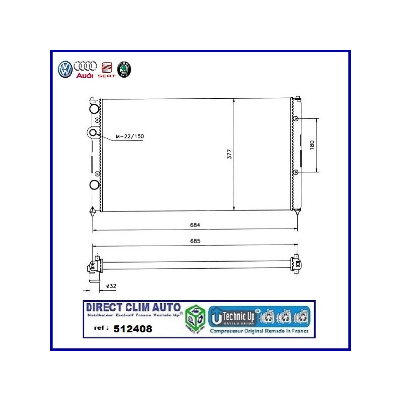 TECHNIC UP REF 512408 RADIATEUR MOTEUR POUR SEAT GROUPE VAG