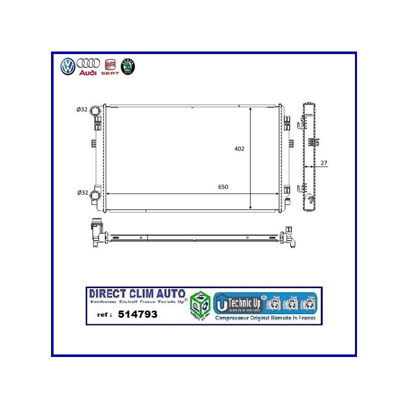 TECHNIC UP REF 514793 RADIATEUR MOTEUR POUR VOLKSWAGEN GROUPE VAG