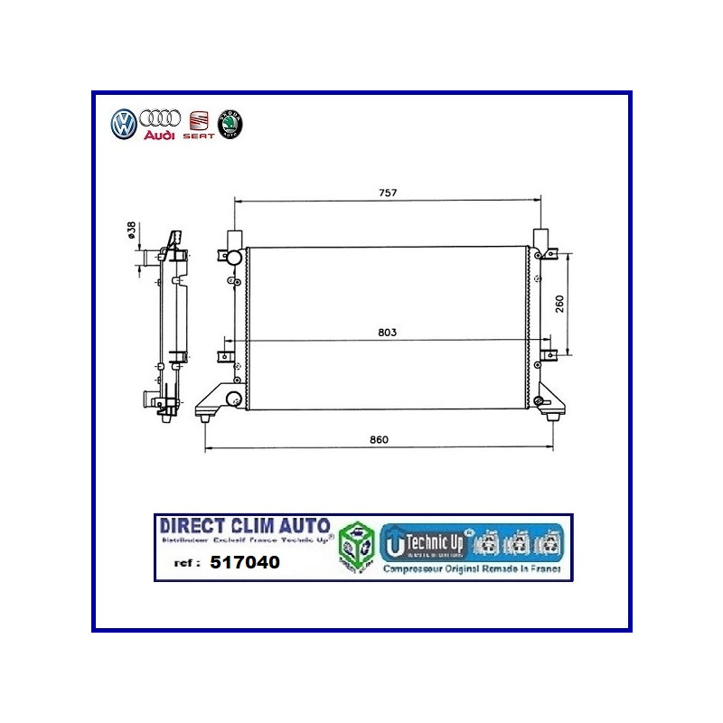 TECHNIC UP REF 517040 RADIATEUR MOTEUR POUR VOLKSWAGEN GROUPE VAG